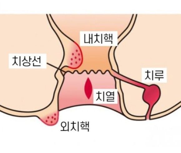 치상선은 항문 안쪽으로 1.5cm 지점에 있는 톱니모양 조직입니다. 내치핵과 외치핵이 동시에 나타나기도 합니다.