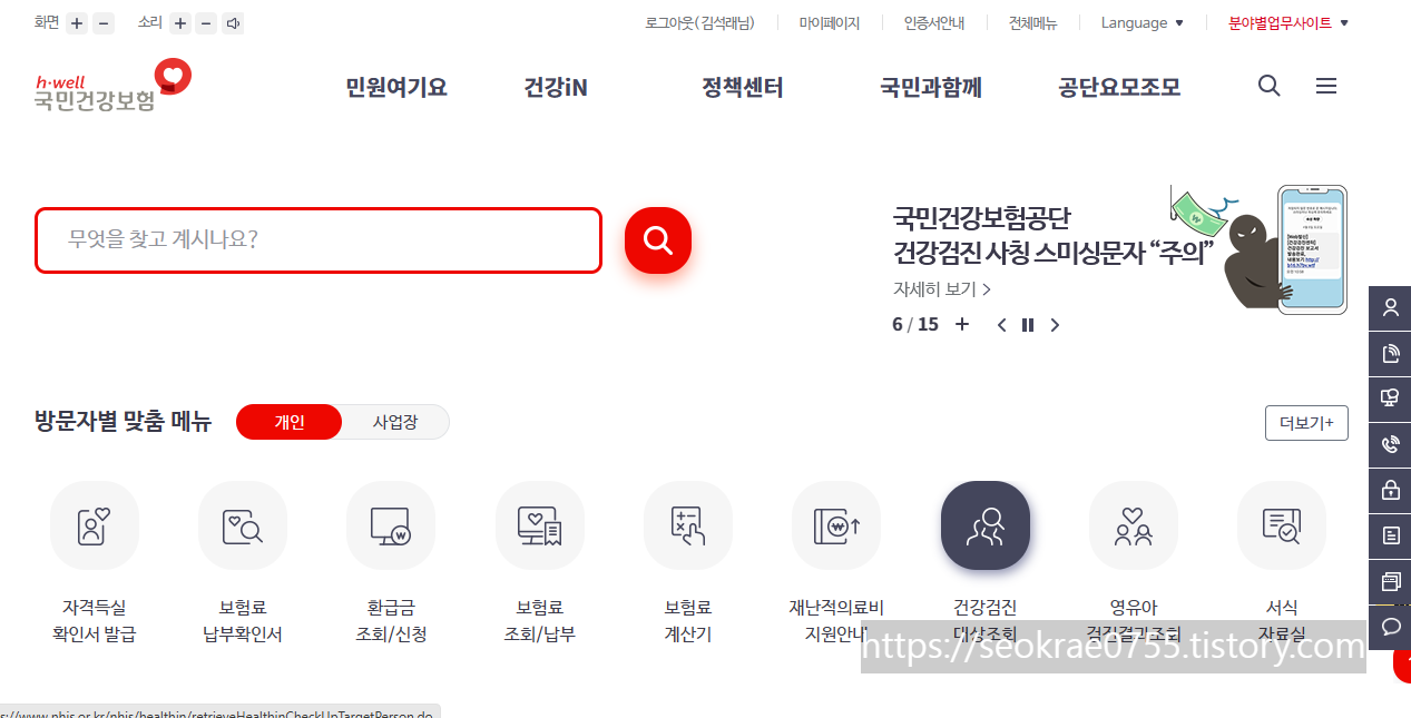 국민건강보험공단에서 시행하는 건강검진은 건강관리의 첫걸음입니다. 검진 대상자가 아니더라도 가족력이 있거나 여러 요인으로 건강상태가 의심된다면 질병을 조기 발견해 치료할 수 있습니다.