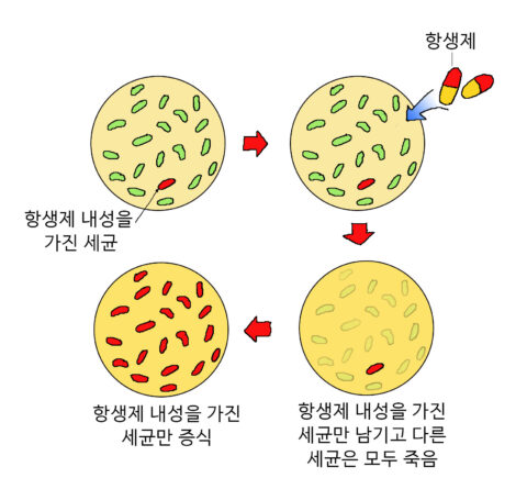 그 이후에 균들이 기전에 대해서 면역력이 생기면 약을 써도 죽지 않게 되는 내성이라는 것을 갖게 됩니다.