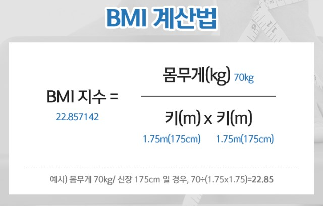 bmi(체질량지수)는 사람의 체중과 키를 이용하여 체지방의 양을 추정하는 지수입니다.